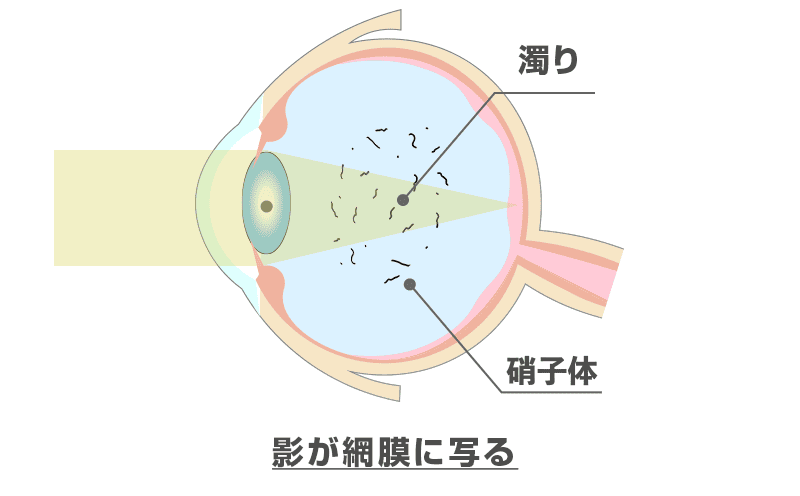 ぶどう膜炎などの目の炎症で浸出物が硝子体に入ることがあり、それが影になって見えることがあります。
